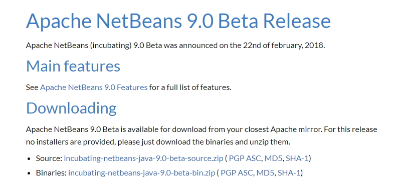 Ahora vamos a descargar la nueva versión de Apache NetBeans aquí