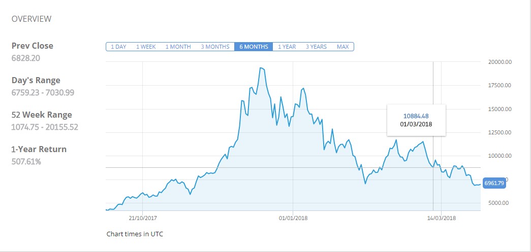 Figura 1. Precio de los Bitcoins basado en la bolsa de inversión eToro.