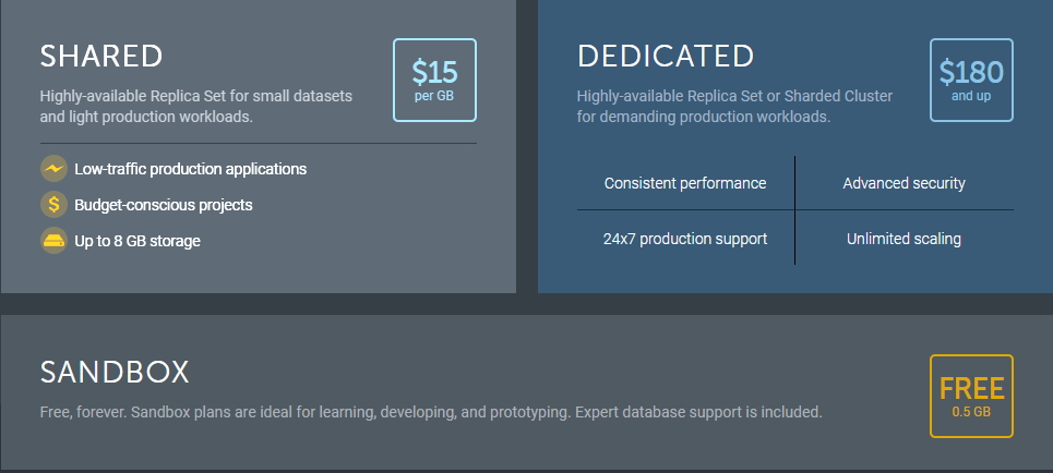 No tenemos que instalar nada en nuestras computadoras para poder iniciar a trabajar con mongo y podemos acezarla desde cualquier computadora con Internet.